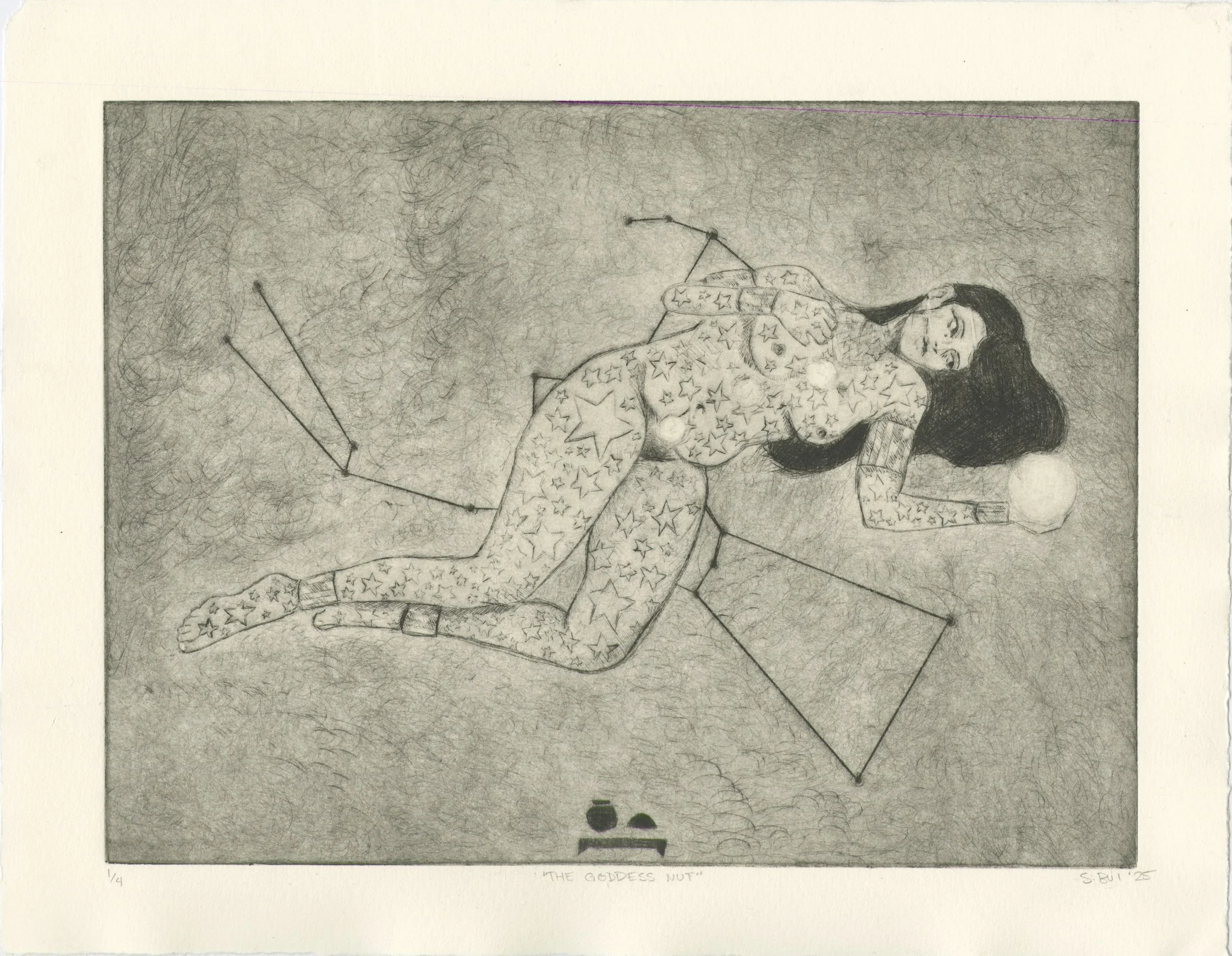 "THE GODDESS NUT" 1/4, 2025, Copperplate Intaglio on Paper, 11" x 14".